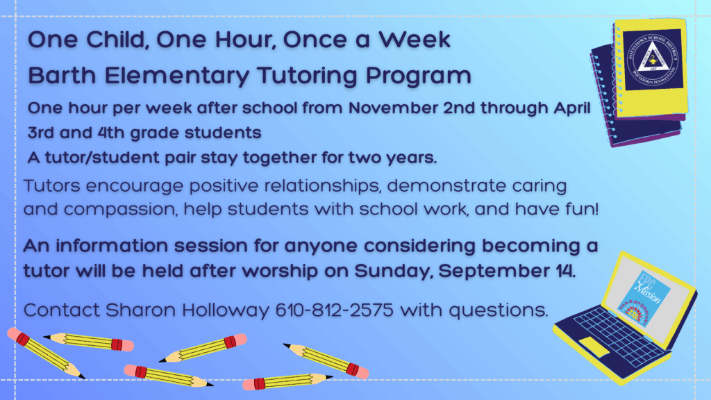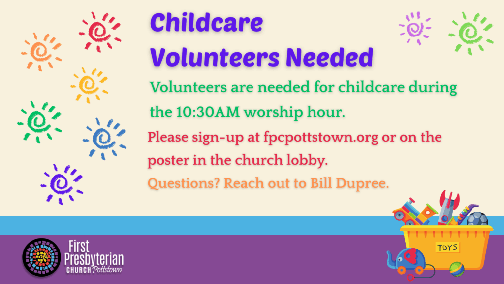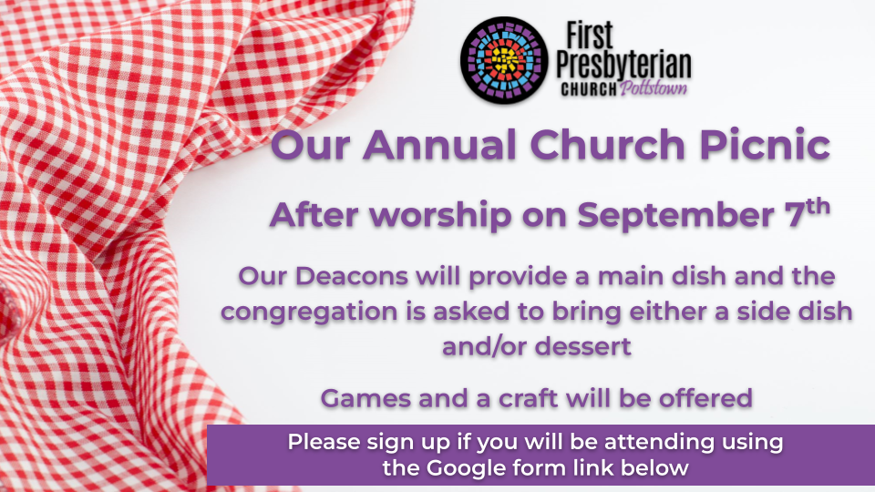11:30 am Fellowship Hour hosted by Sandy White & Liz Genther (after worship in the Community Room)